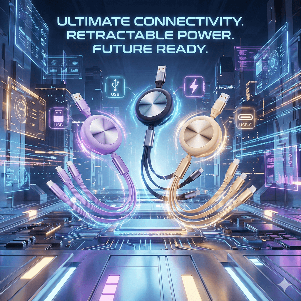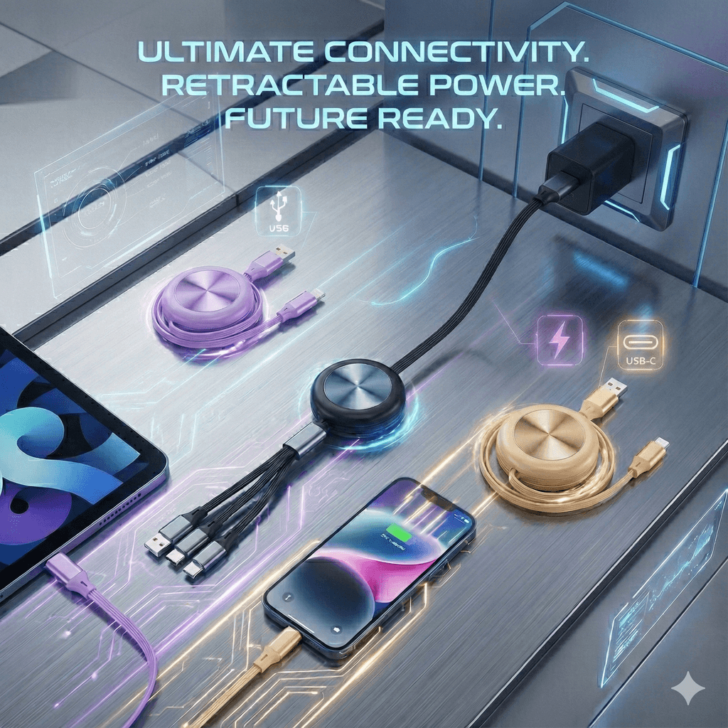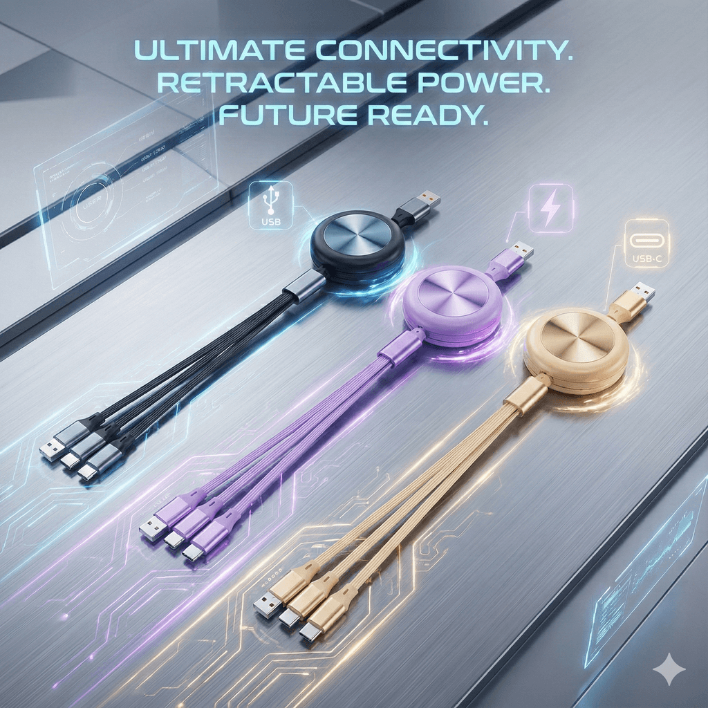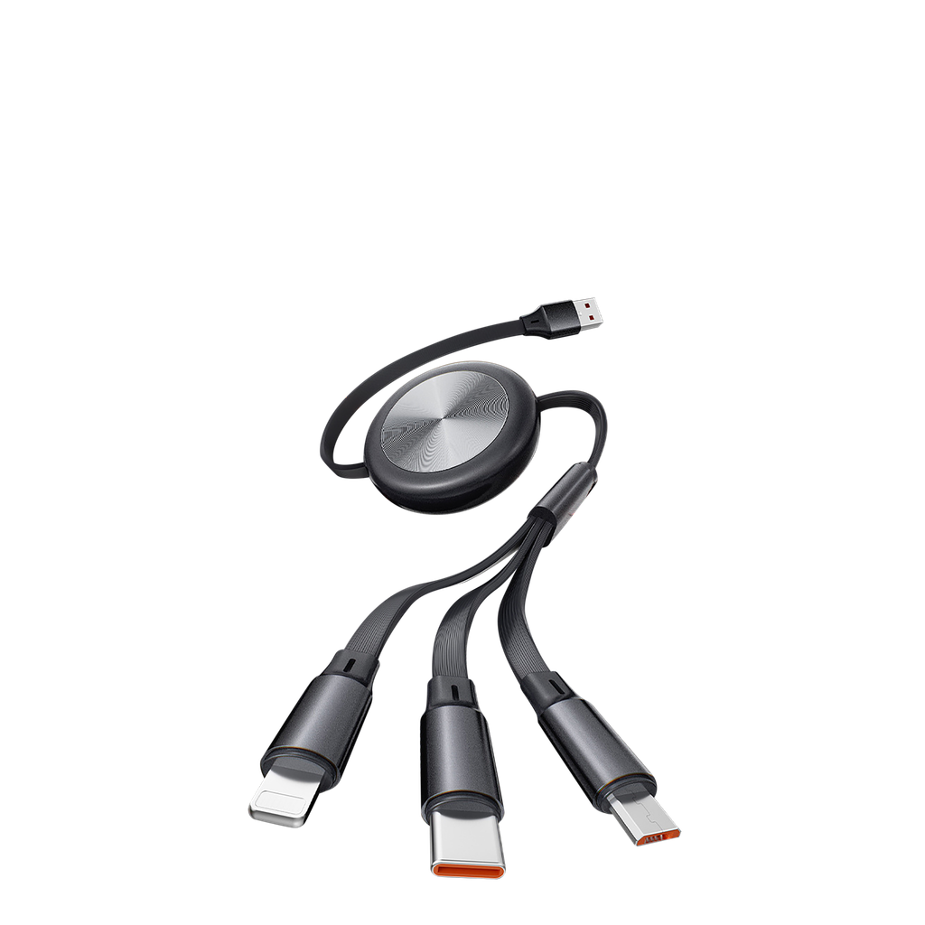 สายชาร์จ 4-in-1 เกรดพรีเมียม ดีไซน์ Retractable อัปเกรดการชาร์จของคุณให้สมาร์ทกว่าเดิม ด้วยสายชาร์จรุ่นใหม่ที่มาพร้อมหัว Aluminium Alloy แข็งแรง ทนทาน จ่ายไฟสูงสุด 15W (2.1A) รองรับการชาร์จ Multi-device พร้อมกัน 3 เครื่องโดยไม่ร้อน สายยาว 1.2 เมตร ปรับระดับความยาวได้ตามใจชอบ ตอบโจทย์ทุกการใช้งานทั้งในรถ ที่ทำงาน หรือพกเดินทาง