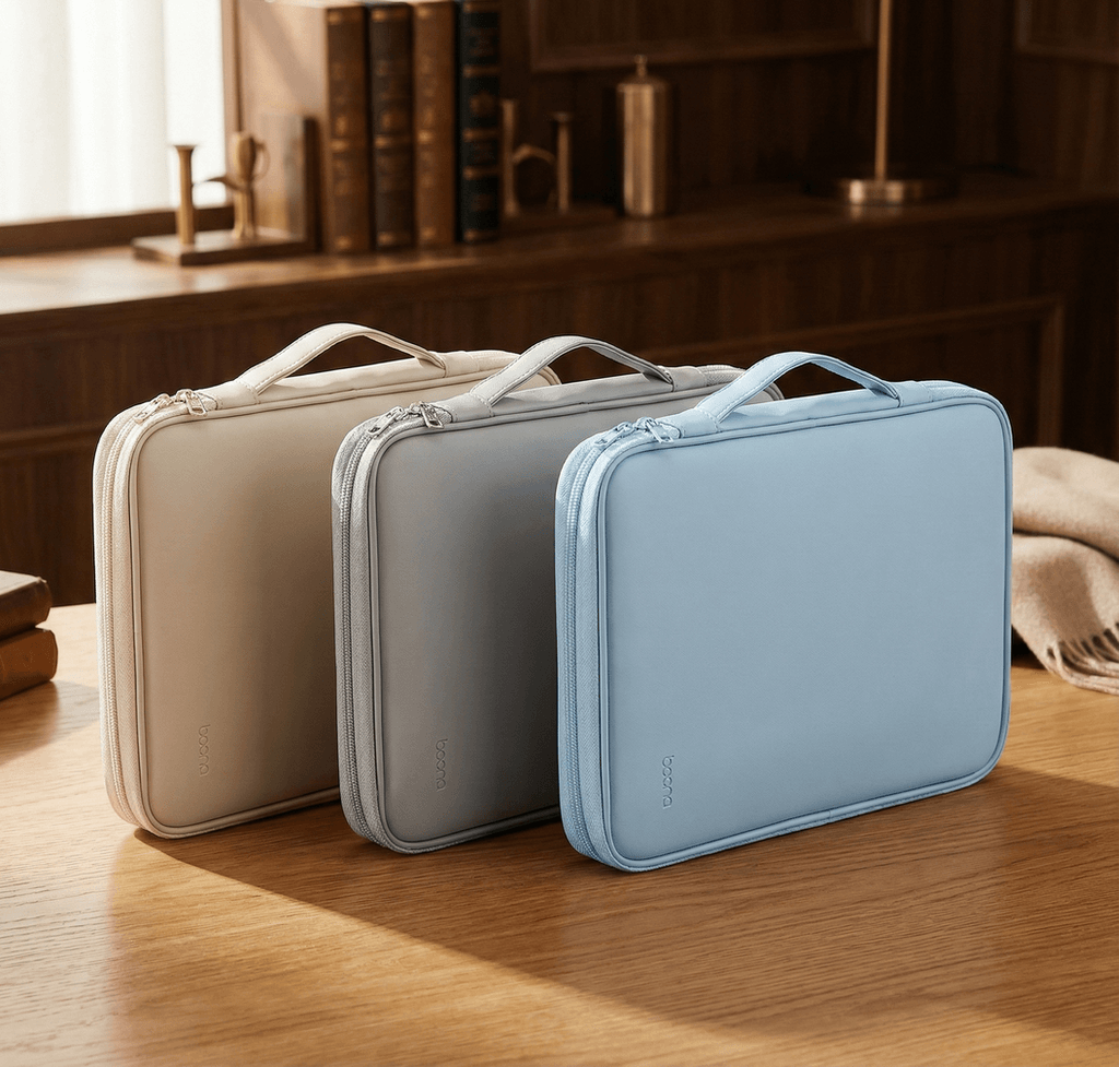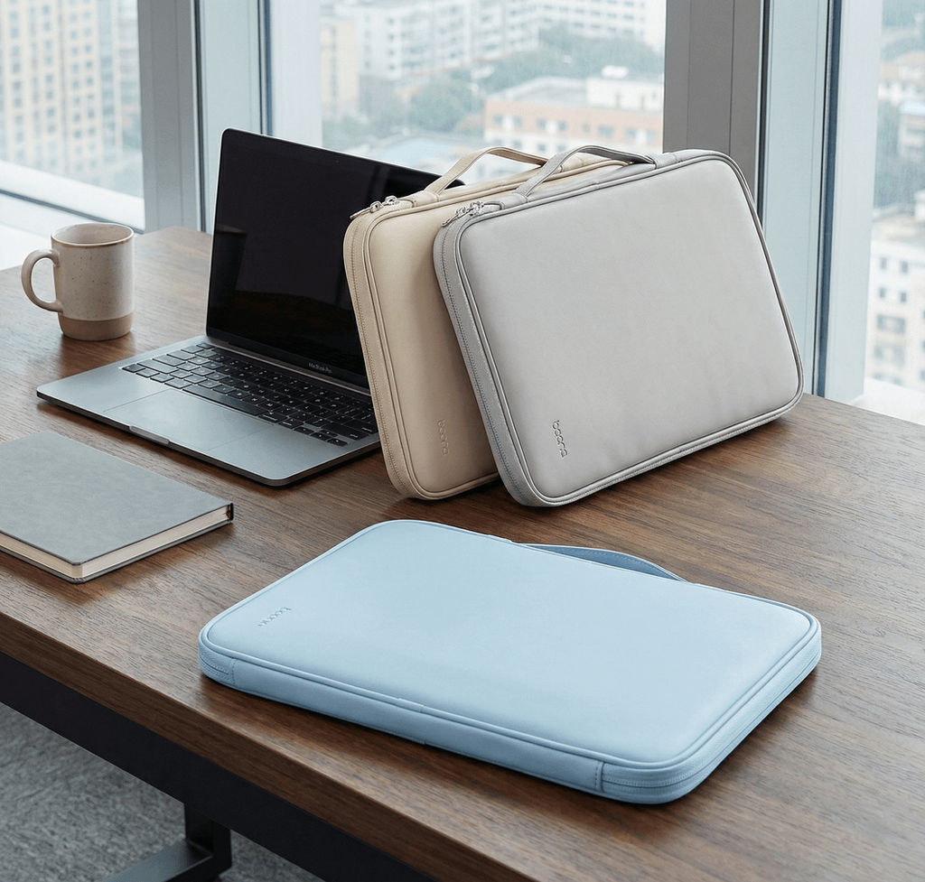 ยกระดับภาพลักษณ์ของคุณด้วยกระเป๋า Laptop Sleeve สไตล์มินิมอล ปกป้องอุปกรณ์คู่ใจอย่างมั่นใจด้วยวัสดุกันกระแทกคุณภาพสูง มาพร้อมหูหิ้วที่ช่วยให้ชีวิตการทำงานของคุณสะดวกขึ้นในทุกการเดินทาง