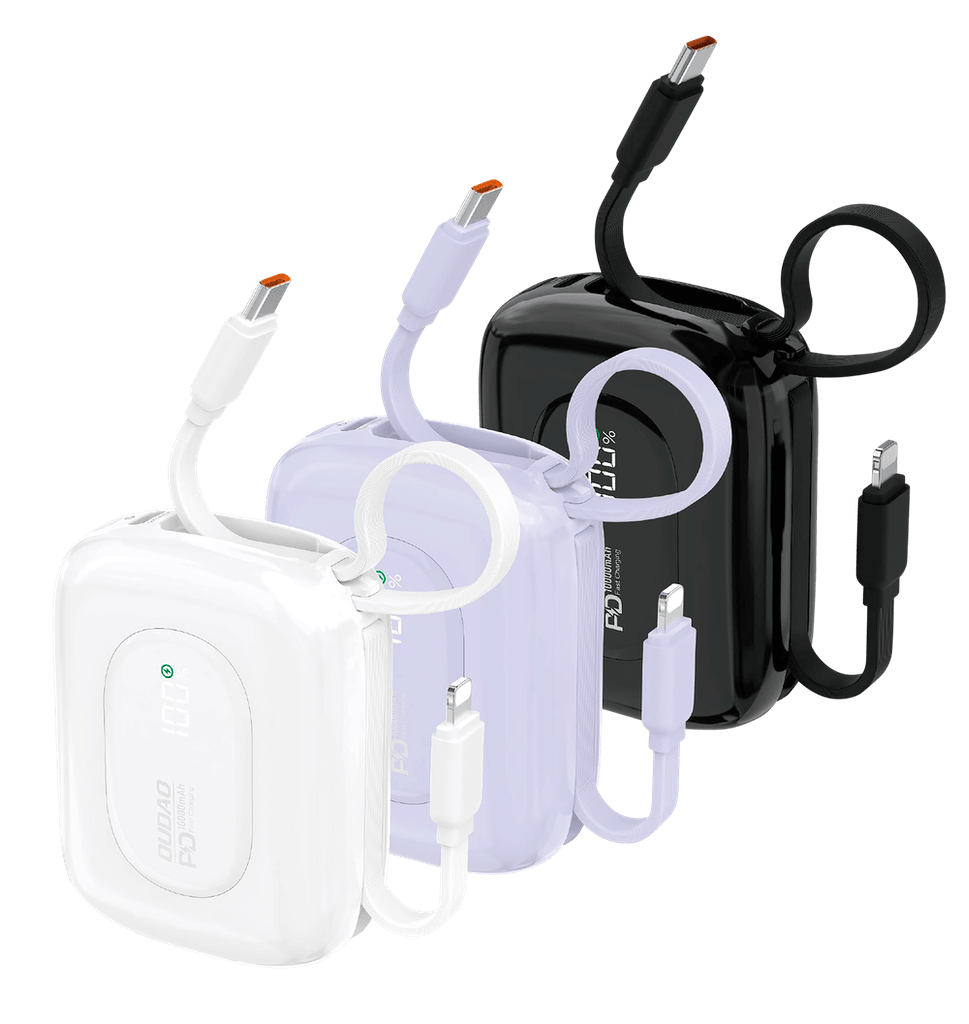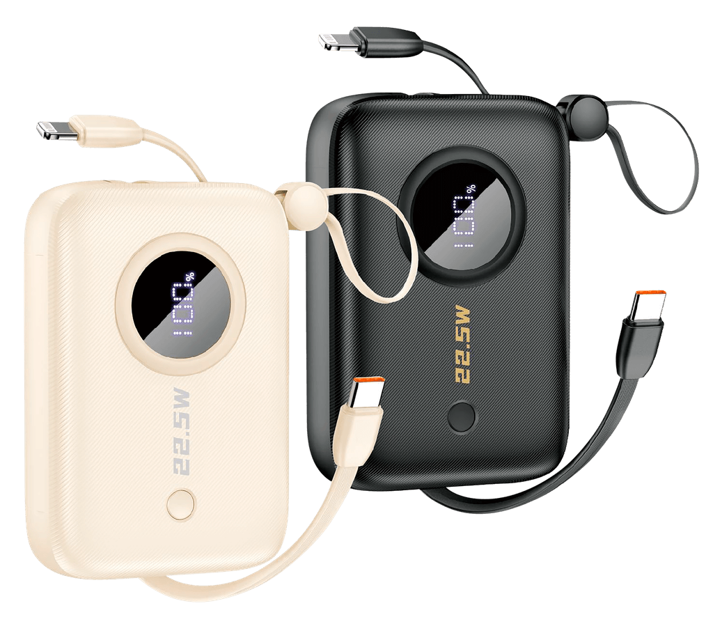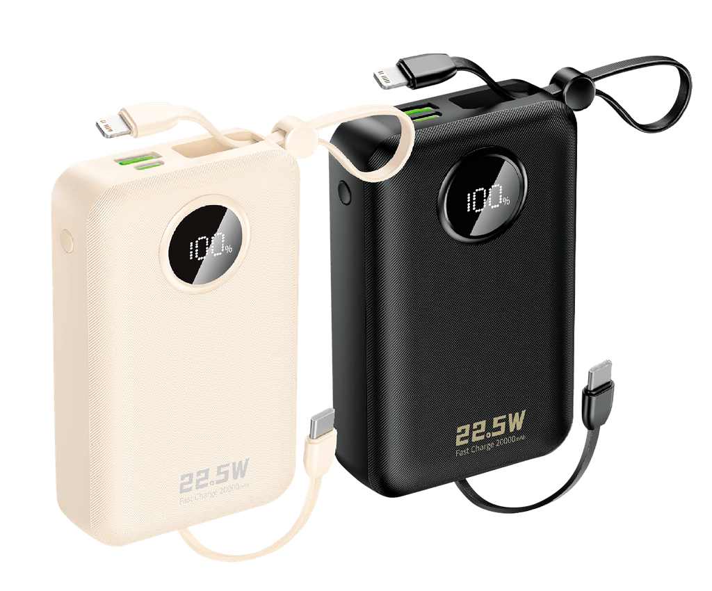 จุดเด่น: มาพร้อมสายในตัว (Type-C / Lightning) หยิบปุ๊บ ชาร์จได้ปั๊บ! ไม่ต้องควานหาสายในกระเป๋าให้วุ่นวาย สะดวกสุดๆ เหมือนมีสถานีชาร์จส่วนตัว