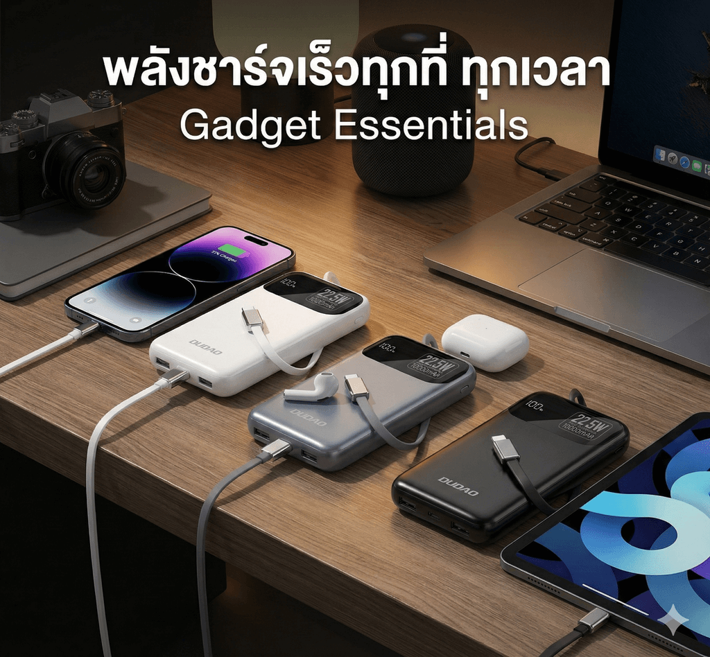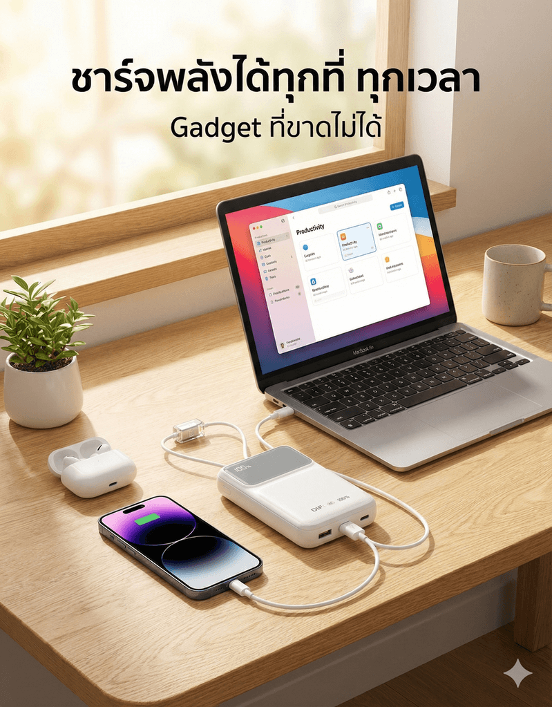เหมาะสำหรับ: การเดินทางไกล, เดินป่า, ขึ้นเครื่องบิน, หรือคนที่มี Gadget หลายอย่าง (มือถือ + หูฟัง + iPad)